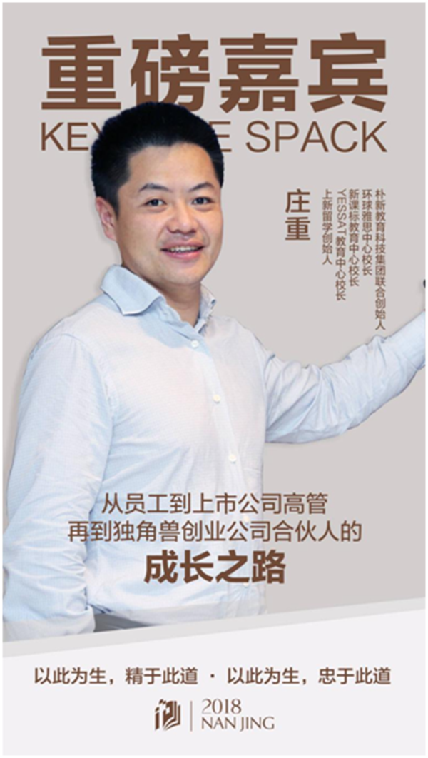 从员工到上市公司高管再到独角兽创业公司合伙人的成长之路 优秀的人生是拼出来的,不是设计出来的 21岁获得“CCTV全国大专辩论赛”冠军,22岁获得中山大学经济学硕士,26岁在昆明成为当时最年轻的新东方校长,之后又任职集团助理副总裁兼沈阳新东方学校校长、总裁助理,34岁加入朴新教育工作成为联合创始人。在别人眼里,他拥有着开挂一般的人生,然而光环的背后,是一位教育人对初心的坚守,是一位奋斗者对人生的拼搏。内心强大的人,自带光芒。 作为朴新教育的联合创始人,庄重先生将作为重磅嘉宾来到峰会现场与各路教育人分享他从员工到上市公司高管再到独角兽创业公司合伙人的成长之路。人生只有拼出来的精彩,永远没有等待出来的辉煌。深谙此道的庄重先生研究生毕业之后聆听了一场激情澎湃的新东方的讲座后,把做一名合格的新东方人作为自己最初梦想。经过层层选拔,一路披荆斩棘,他终于走进了梦寐以求的新东方。从一位普通的员工到教师,再到校长,勤奋踏实、不断精进技艺、深耕管理,在充满竞争的现代社会,他凭借坚持不懈地追求与拼搏取得成功,实现人生自我价值。 以此为生,精于此道,更忠于此道 以此为生,精于此道;以此为生,忠于此道。这是庄重先生对于教育信仰的坚守,也是教育人独有的情怀。在新东方任职期间,作为教师,他不断积累广泛的知识,专研教学,成为行业专家;作为管理者,他以身作则,带领团队开疆拓土,创下辉煌战绩。2008年成为新东方昆明校长,3年时间他让学校的营业额实现了从700万到4900万的突破;之后走马上任沈阳,接手的时候是5500万,2014年到了1.3亿;再后来到了上海新课标,他仅用了不到一年的时间实现学校从3200万到6500万年化收入的改变,这一切数字变化的背后,都是庄重先生一直坚守“校长的自我批评”的教育信仰。 积累沉淀,厚积薄发,再造黑马神话 2015年,庄重先生以联合创始人的身份加入朴新教育,坚持快速行动和人才培养的精神,深耕教育,继续创造着行业神话。朴新以教育培训行业的投资并购和投后管理为主要业务发展模式,快速占领K12培训市场。成功覆盖19个省份、35个城市,建有397个学习中心,拥有4000+全职教师及教学顾问,学生人次超过127.57万。四年时间,快速裂变,成功上市,创造了“朴新式”黑马神话。 坚守信仰,厚积薄发,相信在未来的道路上,庄重先生与他的团队将会让神话继续延续。 |